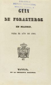 .1864.. LIBRO: .(VIAJES-GUÍA). .GUIA DE FORASTEROS EN MADRID, PARA EL AÑO DE 1855. [SIGUE:] ESTADO MILITAR DE ESPAÑA É INDIAS. AÑO DE 1855.. Madrid: Imprenta Nacional, 1864. 8º. Una lámina retrato de Isabel II grabado por D. Martinez, dibujo...