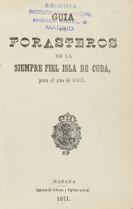 .1871.. LIBRO: .(VIAJES-GUÍA CUBA). .GUIA DE FORASTEROS DE LA SIEMPRE FIEL ISLA DE CUBA, PARA EL AÑO DE 1871. (SIGUE:) ESTADO MILITAR DE LA ISLA DE CUBA EN EL AÑO DE 1871. (SIGUE:) APENDICE QUE CONTIENE LAS NOTICIAS RECIBIDAS DESPUES DE IMPRESA LA...
