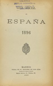 .1896.. LIBRO: .(VIAJES-GUÍA). .GUIA OFICIAL DE ESPAÑA. 1896.. Madrid: Viuda de M. Minuesa de los Ríos, 1896. 8º. 2 láminas retratos de Alfonso XIII y de María Cristina+ grabados por B. Maura en Madrid 1894, 1.021 p. Enc. de la época en...