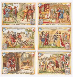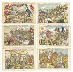 .1910-1950 ca. CROMOS: .(COLECCIONISMO). .SERIES ENTERAS DE CROMOS. Álbum de 40 hojas aprox. con 15 series completas de cromos de chocolates Juncosa, Riucord, Jaime Boix, Amatller, Mundial y Liebig. La mayoría de temática bélica. Presentados en...