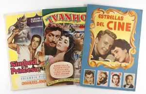 .1950 ca. CROMOS: .(CINE). .SIMBAD Y LA PRINCESA; IVANHOE Y ESTRELLAS DEL CINE. Conjunto de 3 álbumes completos. Ed. Chocolates Juncosa; Ed. Fher y Cliper. En buen estado de conservación.