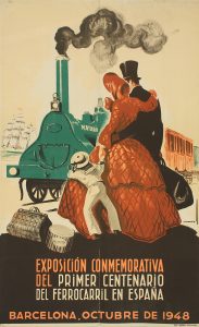 .1948. CARTEL: .MORELL: .EXPOSICIÓN CONMEMORATIVA DEL PRIMER CENTENARIO DEL FERROCARRIL EN ESPAÑA. BARCELONA, OCTUBRE DE 1948. Barcelona: Seix y Barral, 1948. 100 x 62 cm (39,2 x 24,3 in). Cartel cromolitográfico realizado por Morell....