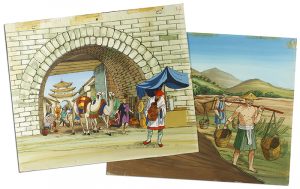.1980 ca.. ORIGINAL ARTÍSTICO: .LOTE DE 107 DIBUJOS ORIGINALES DE LA SERIE ORIGEN Y CIVILIZACIONES. Diferentes técnicas, muchas gouache sobre cartón, otros esbozos de lápiz sobre papel manial, acrílico sobre acetato, etc. Para las series .EGIPTO...