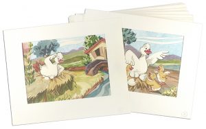 .2000 ca.. ORIGINAL ARTÍSTICO: .LOTE DE 183 ILUSTRACIONES DE DIBUJOS ORIGINALES PARA CUENTOS.. La mayoría gouache sobre cartulina, aunque también hay acuarelas; tamaños de 20 x 30 aprox. Los cuentos son: .EL RUISEÑOR .(45 ilustr.), .EL PATITO...
