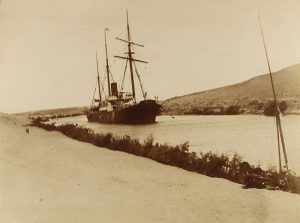.1880-90. FOTOGRAFÍA: .LOTE DE 2 FOTOGRAFÍAS. Dos fotografías sobre papel albuminado, 27 x 17 cm. Barcos cruzando el canal de Suez, realizadas probablemente por Zangak.