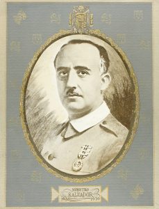 .1939 ca.. FOTOGRAFÍA: .(ÁLBUM-DICTADURA). .SALVADORES DE ESPAÑA.. México: Imp. Algarín, 1939. folio. 2 h. + 32 litografías. Todas las litografías son retratos de Franco y sus generales afines. Presentado en carpeta con escudo dorado en el...