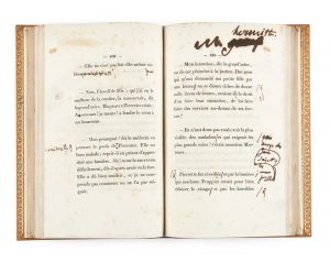 L’exemplaire de Balzac, dont le second tome a été corrigé par lui en vue de la réédition de l’œuvre dans La Comédie humaine en 1843, chez Furne, Dubochet et Hetzel.