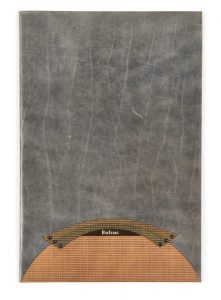 demi-cercle, fixées par 6 rivets noirs, doublure de nubuck gris, boîte de demi-veau gris doublé de nubuck gris (Jean de Gonet, 1996).