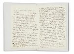 Lettre autographe signée de Balzac, probablement adressée à la princesse de Belgiojoso, dans laquelle il exprime ses difficultés et dévoile les procédés du succès financier en littérature : « M. Considérant a une idée fausse en croyant qu’une nouvelle courte est bonne à quelque chose : c’est, en journalisme, de l’argent perdu. Une bonne histoire qui tient le public en haleine et qui le fait causer pendant un an, donne énormément d’abonnés. » Il refuse pourtant de se plier à son constat :