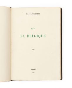 BAUDELAIRE, Charles (1821-1867) — Sur la Belgique — Paris, s.n., 1890 — In-8 (22,7 x 15,5 cm), maroquin gris anthracite, un Manneken-Pis mosaïqué de couleurs différentes et doré sur le premier plat, dos lisse, titre doré en long,...