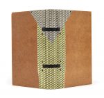 tressage, cabochons noirs, dos lisse recouvert de cuir à motif tressé jaune et gris, 2 rubans apparents, doublures de nubuck jaune, couvertures et dos conservés, chemise à dos de box gris doublé de nubuck jaune, étui (J. de Gonet 2005).