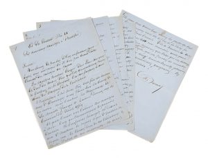 Manuscrit autographe signé d’Alexandre Dumas. Il écrit à Pie IX pour soutenir la béatification des martyrs que torturèrent « les bourreaux de sa majesté François II […] ».