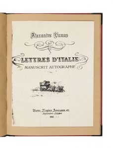 DUMAS, Alexandre père (1802-1870) — Manuscrit autographe signé — S.l.n.d. [Naples, 1862] — 9 p. sur 9 ff. in-4 (27,5 x 21,5 cm), demi-veau noir à coins, double filet doré sur les plats de percaline framboise, dos lisse, titre en long...