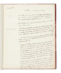 FLAUBERT, Gustave (1821-1880) — Cosmos / Alexandre Humboldt — S.l.n.d. — 23 p. sur 13 ff. in-4 (29,9 x 22,4 cm), demi-maroquin rouge à coins, filet doré sur les plats, dos à nerfs (reliure moderne).