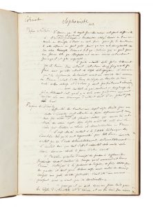 FLAUBERT, Gustave (1821-1880) — Sophonisbe – Mairet Corneille Voltaire : manuscrit autographe — S.l., [entre 1858 et 1862] — 29 p. sur 15 ff. en 1 vol. in-folio (31,9 x 20,9 cm), bradel demi-maroquin lie-de-vin à coins, titre doré en long...