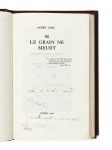 - Lettre autographe signée, 31 juillet 1958, adressée au professeur Froment, à qui Martin du Gard offre cet exemplaire de Si le grain ne meurt. Il lui donne des nouvelles de la publication de la Correspondance Gide-Roger Martin du Gard (2 p. sur 1 f. in-8).