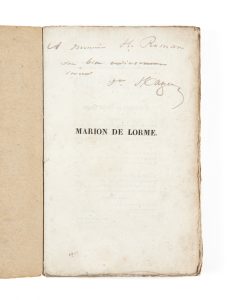 HUGO, Victor (1802-1885) — Marion de Lorme — Paris, Eugène Renduel, 1831 — In-8 (22,1 x 14,3 cm), broché, chemise et étui de demi-maroquin à longs grains rouge.