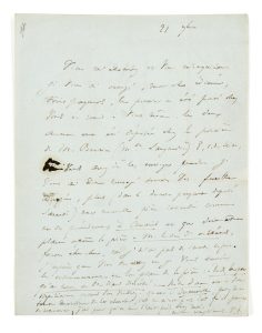 Lettre autographe signée d'Hugo à Eugène Renduel, son éditeur, à propos de la composition des Chants du crépuscule, « Je vous ai donc renvoyé toutes vos feuilles corrigées, plus (dans le dernier paquet déposé samedi) une nouvelle pièce intitulée comme une des précédentes à Canaris et qui doit être placée après la pièce à M. Le duc d’Orléans. »