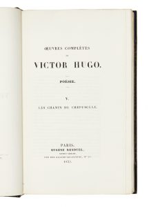 HUGO, Victor (1802-1885) — Les Chants du crépuscule — Paris, E. Renduel, 1835 — In-8 (22,7 x 13,6 cm), demi-cuir de Russie noir à coins, filet doré sur les plats, dos lisse orné d'encadrements de filets dorés, couverture et dos conservés,...