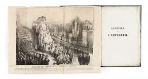 HUGO, Victor (1802-1885) — Le Retour de l’Empereur — Paris, Belloye, 1840 — Plaquette in-8 ( 21,8 x 14,4 cm), bradel papier vert, couvertures conservées (reliure du XXe siècle).