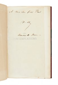 Cet exemplaire est enrichi d'une feuille de papier pelure reliée dans lepremier volume. elle porte un envoi autographe signé à Paul Meurice, qu’Hugo appelle : « mon cher frère Paul » .