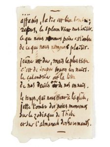 Fragment autographe d'un poème, composé de trois quatrains :