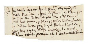 Fragment autographe, sur un « copeau », d'un poème de Victor Hugo intitulé (Le feu céleste brûlant sur le mont Olympe).