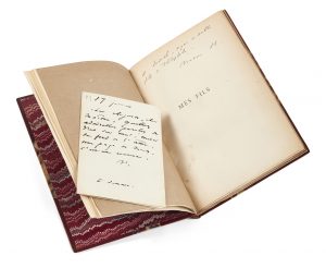 HUGO, Victor (1802-1885) — Mes Fils — Paris, Michel Lévy frères, 1874 — Plaquette in-8 (23,5 x 14,7 cm), demi-maroquin rubis à coins, filets dorés sur les plats, dos lisse avec initiales « V. H. » dorées, couvertures et dos conservés...
