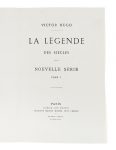 HUGO, Victor (1802-1885) — La Légende des siècles. Nouvelle série. — Calmann-Lévy, Paris, 1877 — 2 volumes in-8 (24 x 15,5 cm), en feuilles, chemise à rubans de soie rouge, étui demi-chagrin et percaline verts.