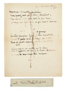 Fragment du poème autographe Hermatyphlos, il ne comporte ici que trois strophes.