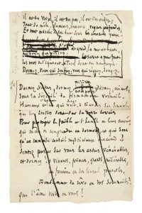 Fragment de poème autographe composé de 19 vers, sur cinq bandelettes de papier de dimensions variables assemblées sur un feuillet.