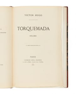 HUGO, Victor (1802-1885) — Torquemada — Paris, Calmann Lévy, 1882 — In-8 (25,3 x 16,1 cm), demi-maroquin lavallière à coins, filet à froid sur les plats, dos à nerfs, tête dorée, couvertures conservées (reliure du XXe siècle).