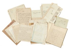 • 19 lettres en français et en italien, adressées à Lamartine par des correspondants italiens (dont Gino Capponi, Guiglielmo Peppe, Fossombuoni et le prince Carsini…), 1826-1853, 46 p. sur 19 ff. et doubles ff.