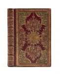 olive et fauve mosaïquées, des éléments du décor sont rehaussés à la peinture, tranches dorées (reliure de l’époque).