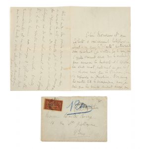 PROUST, Marcel (1871-1922) — Lettre autographe signée — Paris, 2 janvier 1919 — 4 p. sur 1 double f. in-12 (18,3 x 13,2 cm) enveloppe jointe.