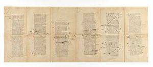 [PROUST, Marcel] (1871-1922). RUSKIN, John (1819-1900) — Placard d'épreuves corrigées pour La Bible d’Amiens — S.l., 20 janvier [1903] — 12 p. in-8 sur 1 f. in-folio (48,6 x 129,2 cm).