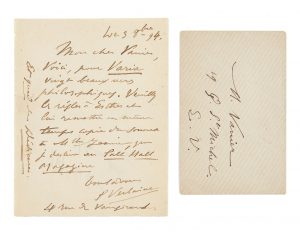 Lettre autographe signée de Verlaine qui adresse à son éditeur Léon Vanier « vingt beaux vers philosophiques », pour lesquels il demande le règlement, ainsi qu’une copie d’un sonnet qu’il destine à Pall Mall Magazine.