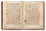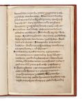 2 - A partir de la seconde moitié du Xe siècle, le volume a rejoint Canterbury où il fut augmenté de gloses en langue ango-saxonne avec des caractéristiques du dialecte du Kent. Le manuscrit d’où provient ce bi-feuillet pourrait être les deux volumes recensés dans l’inventaire du XIIe siècle de Christ Church à Cantorbury sous l’entrée “Aldelmus de laude uirginum” (James, Ancient Libraries, 1903, pp. 21, nos. 47-48). Saint Dunstan, érudit et chroniqueur de la cour du roi Edgar, collectionneur de livres et la force motrice derrière la réforme des monastères anglais, fut nommé abbé de Glastonbury peu après 940, puis fut évêque de Worcester en 957 pour ensuite devenir archevêque de Canterbury peu après. Pour Dunstan, la figure et les écrits de saint Aldhelm occupaient une grande importance : Dunstan fut un promoteur actif de son culte et joua un rôle dans la translation des reliques de saint Aldhelm de Malmesbury à Canterbury. Le thème traité dans l’ouvrage De laude virginitatis qui fait l’éloge aussi de la réforme et bonne conduite monastique a très certainement aussi retenu son attention. Enfin il semble peu probable qu’un ouvrage de cette importance conservé dans les bibliothèques des deux diocèses que Dunstan a fréquenté puisse lui avoir échappé. De par son ancienneté, il est possible que l’on ait cru que le manuscrit remontait à l’époque de saint Aldhelm, bénéficiant ainsi d’un statut de quasi-relique. 3 - Le manuscrit fut démembré au début du XIXe siècle, sans doute à Brighton par un libraire nommé J. Bohn (R. Collins, Anglo-Saxon Vernacular MSS. in America, 1976, p. 34). S.W. Singer (1783-1858) a fait l’acquisition en 1827 d’une poignée de feuillets : Bohn s’en servait comme emballage ou reliure pour des livres imprimés. Singer a présenté un feuillet à Sir Thomas Phillipps (1792-1872), qui fit l’acquisition des autres feuillets Singer dans les ventes des collections de Richard Heber en 1836 (lot 32), et de Guglielmo Libri en 1859 (lot 111). Phillipps les fit relier sous la cote MS 8071, et vendu chez Sotheby’s 25 novembre 1969, lot 442, à Yale University, Beinecke, MS 401 + 401A. Les feuillets conservés à Cambridge (Cambridge University library, MS Add. 3330) furent également acquis auprès de J. Bohn et un feuillet provient de chez W.V. Daniel. La Bodleian Library acquiert son premier feuillet en 1895, puis en 1942 et 1965 (MS Lat., th.d.24, fols.1-24 + Arch. A.f.131). Le British Museum fit l’acquisition en 1841 d’un premier feuillet provenant d’une couverture d’ouvrage du XVIIe siècle puis un autre ouvrage imprimé couvert de manière semblable (Add. MS 50483K + 71687, les couvertures des volumes suivants : Bornitius, Emblemata ethico politica, Mainz, 1669, cote 637.d.23, and John Jones, Our Saviour’s Journey to the Gadarens, 1615, cote C.123.a.29). Enfin on trouve un feuillet à la Free Library de Philadelphie (J.F. Lewis collection, MS ET121) avec la mention suivante : “Given to me by Mr R. Contan, Mar. 1855”. En tout 38 feuillets sont conservés dans six bibliothèques (voir la reconstitution proposée par Gwara, Aldhelmi, 2001, pp. 87-90). Le bi-feuillet proposé ici est le seul connu encore en mains privées. 4 - Notre bi-feuillet fut acquis par Wilfred Merton (1888-1957) du marchand Tregaskis, sans doute en 1921 (voir sa vignette ex-libris portant la date de 1921 sur la contre-garde supérieure). Bernard Breslauer en a fait l’acquisition lors de la succession de Merton (cat. 90, 1958, no. 3); vendu à H.P. Kraus (cf. Rare Book Saga, 1979, p. 210); Catalogues H.P. Kraus cats. 88 (1958), no. 5, et 95 (1961), no. 3, vendu à Dr Peter Ludwig (sa vignette ex-libris signée Hans Erni: Ludwig MS XI,5; une seconde vignette ex-libris sur le recto de la première garde : “Irene and Peter Ludwig. Aachen”); vente de la “Sammlung Ludwig” au J. Paul Getty Museum, CA. en 1983; vendu chez Sotheby’s, 6 décembre 1988, lot 33; Collection Martin Schøyen MS 197. bibliographie E.A. Lowe, “Membra Disiecta”, in Revue Bénédictine 39 (1927), no. 89, pp. 191-192; H. Meritt, “Old English Aldhelm Glosses”, in Modern Language Notes 66 (1952), pp. 553-554; N.R. Ker, Catalogue of Manuscripts Containing Anglo-Saxon (1957), no. 12, pp. 10-11; H. Meritt, “Old English Glosses, Mostly Drypoint”, Journal of English and Germanic Philology 55 (1961), p. 441; T.E. Marston, “The Earliest Manuscript of St. Aldhelm’s De Laude Virginitatis”, Yale University Library Gazette 44 (1970), pp. 204-06; L. Goosens, The Old English Glosses of MS.Brussels, Royal Library, 1650 (1974), p. XIV and no. 9, p.19; R.L. Collins, Anglo-Saxon Vernacular Manuscripts in America (1976), no.1b; N.R. Ker, “A Supplement to the Catalogue of Manuscripts”, Anglo-Saxon England 5 (1976), no.12, p.122; W. Cahn and J. Marrow, « Medieval and Renaissance Manuscripts at Yale », Yale University Library Gazette 52 (1978), no. 3, pp. 178-9; H. Gneuss, “A Preliminary List of Manuscripts Written or Owned in England up to 110”, Anglo-Saxon England 9 (1981), no.857, pp.48 and 54; A. von Euw, Die Handschriften der Sammlung Ludwig, III (1982), pp.66-69; Acquisitions, Supplement: Manuscripts’, The J. Paul Getty Museum Journal 12 (1984), p.296, no.77; B.A. Shailor, Catalogue of Medieval and Renaissance MSS. in Beinecke Rare Book and Manuscript Library, II, 1987, p.282; J. Griffiths, ‘Manuscripts in the Schøyen Collection copied or owned in the British Isles before 1700 », English Manuscript Studies, 5, 1995, pp.39-40; S. Gwara, « Manuscripts of Aldhelm’s Prosa de Virginitate and the Rise of Hermeneutic Literacy in Tenth-Century England », Studi Medievali 35 (1994), pp.101-59; W.P. Stoneman, « ‘Writ in Anglo-Saxon Character and of No Further Use ’: AngloSaxon Manuscripts in American Collections », in The Preservation and Transmission of Anglo-Saxon Culture, 1997, pp.103 and 106; S. Gwara, Aldhelmi Malmesbir