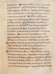 Initiale ornée : Les lettres combinées “gl” de facture insulaire rappelle les lettres “Li” qui introduisent le mot “Liber” dans les manuscrits tels les évangéliaires anglais (voir Alexander, Survey of MSS Illuminated in the British Isles, 1, Insular MSS., 1978, pls. 52, 123 and 125), mais de meilleures comparaisons sont possible aussi. Le décor, avec des hastes montantes sous forme de hameçon (fishhook-like ascenders) et soulignés de petits points colorés, rappelle le décor d’un évangéliaire du VIIIe siècle conservé à Leipzig (Survey, no. 15, pl. 67), un commentaire du VIIIe siècle sur Job conserve à la Bodleain Library de Oxford (Survey, no. 40, pl.136) et peut-être aussi le “Livre de Nunnaminster” des VIIIe et IXe siècle qui a appartenu à l’épouse du roi Alfred (Survey, no. 41, pl. 139). Les manuscrits insulaires décorés de cette époque sont d’une insigne rareté en mains privées. Les derniers trouvés sur le marché sont les suivants: un bi-feuillet du VIIIe siècle extrait du manuscrit dit “Sacramentaire de St. Boniface” avec 4 initiales, vendu chez Sotheby’s, 4 décembre 2007, lot 44 (250,000 pounds); et le fragment d’un bi-feuillet extrait de la Historia d’Eusèbe avec une petite initiale, vendu chez Sotheby’s 25 juin 1985, lot 50 (Wormsley Library).