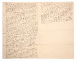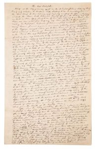Manuscrit complet d’un célèbre chapitre de ses Ornithological Biography, sur la perte d’un portefeuille de dessins d’oiseaux à Natchez, heureusement retrouvé plus tard. Il s’agit du chapitre « The Lost Portfolio » de son Ornithological Biography, or an account of the habits of the birds of the United States of America ; accompanied by descriptions of the objects represented in the work entitled The Birds of America, and interspersed with delineations of American scenery and manners (Edinburgh, Adam & Charles Black, 1835, vol III, p. 564-567, avec quelques variantes). Cet ouvrage servait de commentaire au fameux ouvrage de planches The Birds of America. Audubon y donnait de nombreux et très intéressants détails sur les oiseaux qu’il avait représentés, ainsi que le récit de ses voyages et observations. Alors qu’il se trouvait à Natchez le 31 décembre 1820, son parent Nicolas Berthoud a proposé à Audubon de l’accompagner dans son bateau jusqu’à la Nouvelle Orléans. Il raconte le départ, avec le bateau remorqué par le bateau à vapeur Columbus… Soudain, Audubon s’aperçoit qu’il manque une partie de ses bagages, notamment un portefeuille contenant un certain nombre de croquis exécutés lors de sa navigation sur les fl euves Ohio et Mississipi de Cincinnati à Natchez, particulièrement précieux pour sa collection, car ils étaient pleins de naturel, contenant même des espèces jamais encore représentées et peut-être jamais décrites. Il se rappelle qu’il le tenait sous son bras et l’avait confi é à un domestique de son ami, qui, dans la précipitation du départ, négligea de l’emporter à bord. Il y avait aussi dans le portefeuille une esquisse à la pierre noire à laquelle il a toujours été très attaché. Il ne lui restait de tout cela que le souvenir. Dans la nuit, Audubon rêve que le livre a été ramassé par un batelier, qui décorera sa cabine avec ses dessins ; et il se rappelle que, quelques années auparavant, les rats du Norway avaient dévoré une collection de dessins bien plus importante encore… Le 16 mars 1821, il reçoit une lettre de Natchez l’informant que son portefeuille avait été trouvé et déposé au bureau du Mississipi Republican. Il peut ainsi récupérer ses dessins, en bon état, sauf un dessin manquant, probablement gardé comme commission par la personne qui l’avait ramassé.