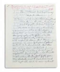 MANUSCRIT autographe signé « Herbert C. Brown », New Continent Awaiting Discovery, [1992] ; 9 pages in-4 agrafées ; en anglais.