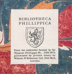 Catalogue des livres de la bibliothèque de feu Chrétien-Guillaume Lamoignon-Malesherbes, disposé par Jean-Luc Nyon..., Paris, 1797. – Sir Thomas Phillips (1792-1872), grand collectionneur et bibliomane anglais; acquis à l’amiable par l’entremise du libraire William Robinson (voir étiquette sur le contre plat supérieur). Thomas Phillips s’affubla lui-même de l’appellation «vellomaniaque». Sa fortune entière fut engloutie dans l’acquisition d’exemplaires très rares et très choisis. C’est à lui que nous devons la survivance de milliers de manuscrits anciens pillés dans les monastères durant la Révolution.