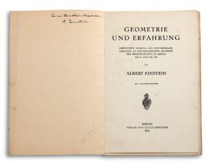 EINSTEIN ALBERT (1879-1955). Geometrie und Erfahrung. Erweiterte Fassung des Festvortrages gehalten an der Preussischen Akademie der Wissenschaften zu Berlin am 27. Januar 1921