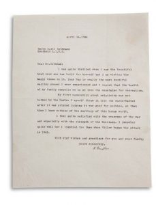 Einstein évoque le beau bateau construit par le fils de Rothman, à qui il souhaite de passer de bons moments dessus. Leur baie est le plus beau lieu de navigation qu’Einstein ait jamais connu, et il regrette que la santé de sa famille le contraigne à se rendre à la montagne pour les vacances. Il explique le destin de son manuscrit sur la théorie de la relativité : il n’a pas été brûlé par les Nazis. Il l’a lui-même jeté à la poubelle après son impression, jugeant qu’il n’était pas bon. À cette époque, il ignorait tout du snobisme de ce monde. Il est très satisfait des progrès de la guerre et particulièrement de la force des Russes. Il se souvient bien d’avoir eu très peur pour eux quand Hitler a commencé ses attaques en 1941…