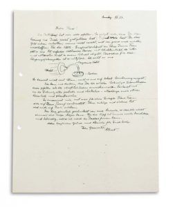 Il ironise sur la lettre de mendiant (« Bettelbrief »), et le saut dans le joug (« der Sprung ins Joch »). Il espère qu’il a reçu l’argent, et si cela ne suffi t pas, il aidera davantage. Pour la sensibilité au froid des pieds de sa femme (« die Kälte-Empfi ndlichkeit der Füsse Deiner Frau »), il existe une sorte de simple lampe électrique avec contact à fi che qui émet une lumière rouge et ultra rouge dans un faisceau, particulièrement utile pour les saisons de transition. Il en fait le DESSIN légendé « Strahl / Biegsames Kabel / Boden »(rayon, cordon souple, sol). Ça ne nécessite pas beaucoup d’électricité, ne dépendant que du réchauff ement local.