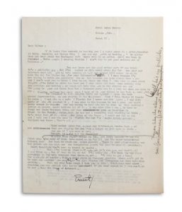 Il ajoute un long post-scriptum pour raconter qu’il a entendu Winchell une nuit à la radio, alors qu’il était en voiture, avertissant E.H. que personne n’essayait de le doubler. Mais qui ? Howard Hawks ? Howard Hughes ? Shipwreck Kelly ? Barney Glazer ? Mais il a bien reçu le message. C’est comme quand il avait cogné un gars avec un coup de poing invisible, et que la police avait interrogé Winchell après sa mort, alors que c’était le Nazi qui avait fait le coup, et qu’Hemingway pouvait prouver qu’il n’y était pour rien, étant resté tout ce temps à Sun Valley. Mais c’était un coup dur…