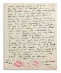 Belle lettre ornée de baisers au rouge à lèvres, à propos de Diego Rivera.