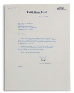 KENNEDY JOHN FITZGERALD (1917-1963). L.S. « Jack », Washington 11 mai 1959, à John E. MAGUIRE, directeur de l’Ætna Finance Company, à Jacksonville (Floride)