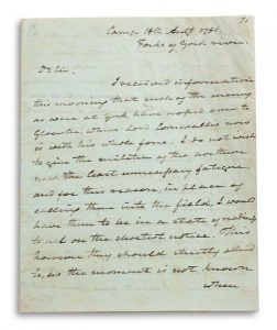 Lettre de la campagne de Yorktown pendant la guerre d’Indépendance américaine.