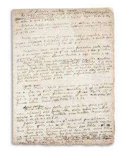 ; 8 pages petit in-4, seules les 4 premières sont écrites (20,4 x 15,4 cm), une feuille entière pliée (filigrane : cor de postillon HG / MC), les 4 dernières pages vierges et non coupées ; en latin.